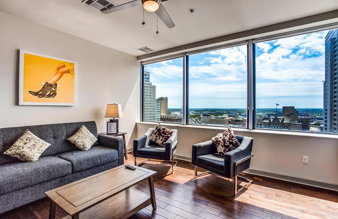 Boasting spa facilities such as an outdoor swimming pool, the 2-room 22Nd Fl Bold Cozysuites With Pool, Gym, Roof apartment is situated in the Main Street district of Dallas, approximately a 17-minute stroll from Perot Museum of Nature and Science.